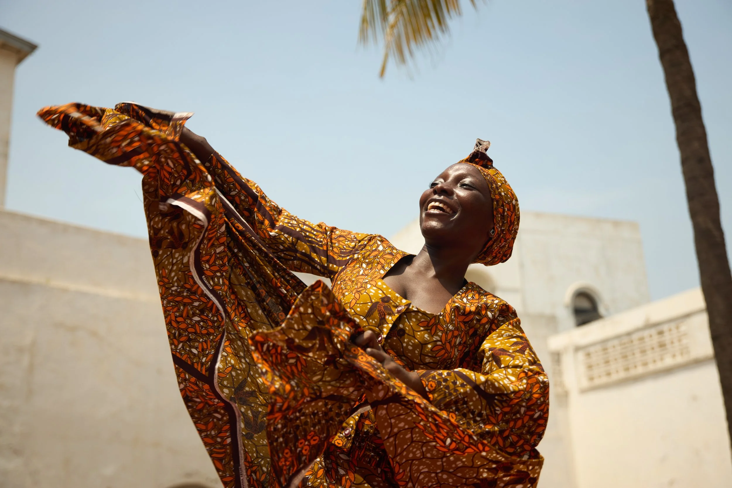 Bertschy (Schweiz) und Kossakamvwe (D.R. Kongo) arbeiten für WAX TRADERS mit einem wahrhaft transnationalen Ensemble. Gemeinsam mit ihrer Co-Autorin Edwige Dro (Côte d’Ivoire) begibt sich Bertschy auf eine Spurensuche, die in den Archiven der Basler Mission beginnt und entlang der Handelsrouten nach Ghana führt. Ihr Text changiert zwischen Liedern über die wirtschaftlichen und historischen Begebenheiten, Marktszenen und biographischen Erzählungen. Araba Dansowaa (Ghana), Jahelle Bonee (Côte d’Ivoire)und Martina Momo Kunz (Schweiz) singen und performen sich wagemutig durch die komplexen Zusammenhänge und springen zwischen ihren Rollen hin und her. Kossakamvwe schafft mit den drei Sängerinnen und dem Perkussionisten Jonathan Tshimbombo (D. R. Kongo) ein musikalisches Epos und nimmt das Publikum genauso vergnügt wie melancholisch mit auf eine lange Reise zwischen Kontinenten und Jahrhunderten. Die Kostüme von Austin Nortey (Ghana) führen uns durch die Geschichte der Drucktechniken, Designs und Kleidermoden, von den traditionellen Batikstoffen aus Indonesien und Westafrika, über die europäischen Kopien, zu den chinesischen. Das Bühnenbild von Percy Nii Nortey (Ghana) reflektiert die verschiedenen Schichten von Kultur und Arbeit im Textilgeschäft zwischen Traditionen und kolonialen Einflüssen.